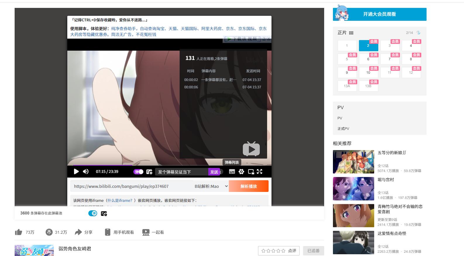 < 脚本 解锁b站vip视频+弹幕字幕移植 的反馈