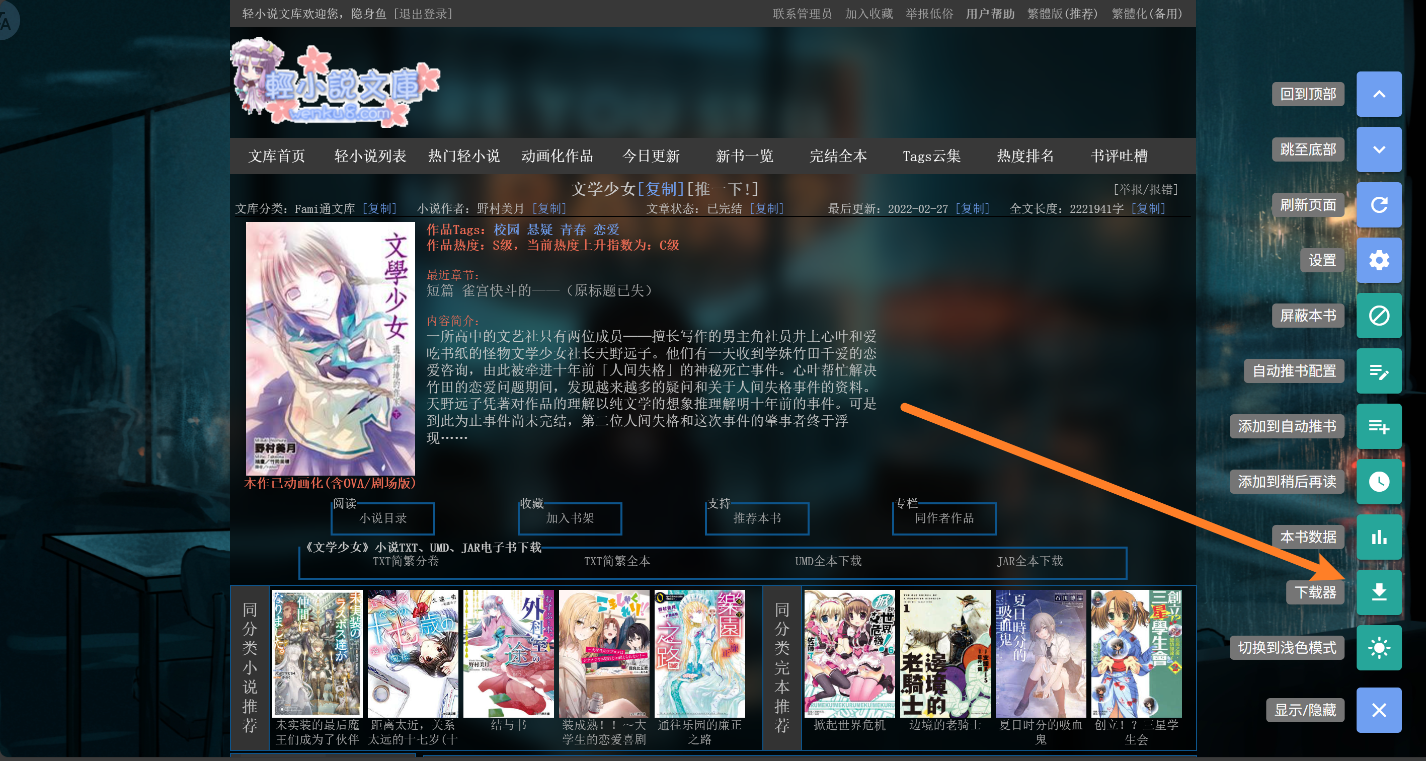 轻小说文库全方位体验改善,涵盖阅读、下载、书架、推荐、书评、账号、页面个性化等各种方面,你能想到的这里都有。没有?欢迎提出你的点子。