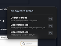 3. Modern UI: A minimalist floating button appears only when feeds are found. Supports dark mode natively and offers one-click copying and direct access.