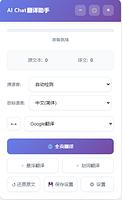 AI Chat翻译助手是一款功能强大的浏览器翻译插件,支持全页翻译、划词翻译、悬浮翻译等多种模式,集成了多家翻译API,能够自动检测语言并智能显示翻译按钮。