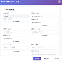 在设置面板的"API密钥配置"区域配置各翻译服务的密钥: