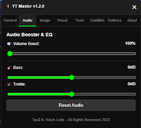 **YouTube Master Control** is an "All-in-One" userscript that provides full control over audio, video, interface, and features that native YouTube lacks. Forget about installing 10 different extensions; this script does it all.