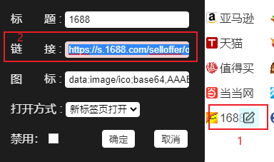1.简单的:你可以先点击设置,然后点击1688后面的编辑选项,将链接替换成你自己的这个。