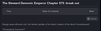 This script also makes a couple of cosmetic changes when using Night Mode. It change's MTLNovel's donation banner (at the bottom of the page) to a darker color. The default color was too bright for me when reading at night. It also changes the 'Settings' button to match the night mode theme a bit better.