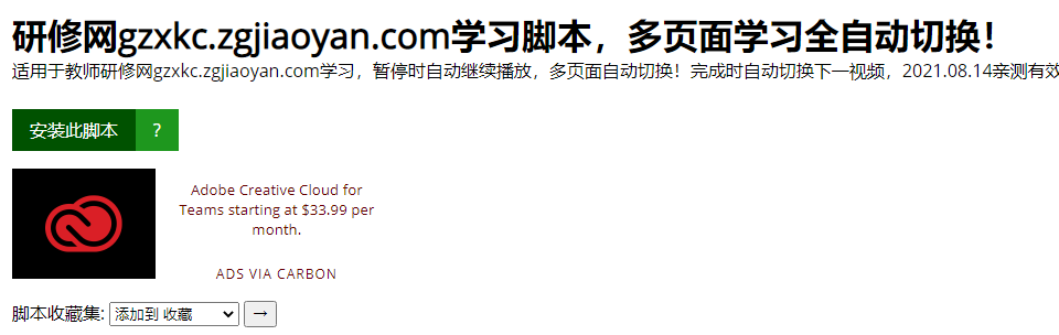 < 脚本 研修网2.0学习脚本,多页面学习全自动切换! 的反馈