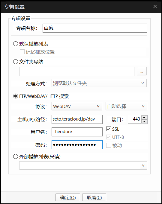 • 4.再输入地址:https://用户:密码@主机/PanPlaylist/(参考迅雷云盘),