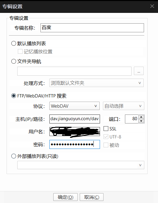 上图是以坚果云为例,填写的脚本WEBDAV画质配置