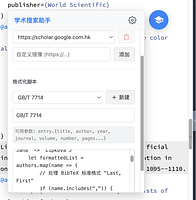 Fetch BibTeX/GB7714 from Google Scholar on any site. Support custom JS formatting.